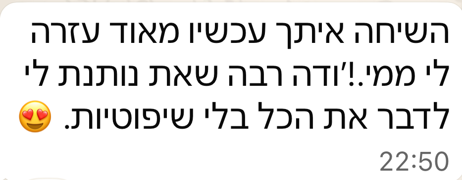 המסע הזה לא מבטיח פתרונות מיידיים — אבל הוא כן מציע שינוי אמיתי, יציב ועמוק. כזה שנולד כשאת שבה הביתה אל עצמך — מתוך אהבה וחמלה.